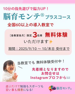 只今『脳育モンテ®︎』をプラスしてのコースにおいて 各月先着3名まで無料体験を実施中です